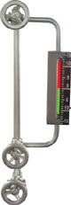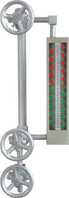 GYJ 雙色冷光源水位計是用于監(jiān)測鍋爐及壓力容器水位的一次直讀儀表,表體兩側(cè)視窗玻璃成一定夾角,儀表后側(cè)配置發(fā)光二極管光源,由于光學(xué)的折射及反射原理,氣相呈紅色,液相呈綠色,兩色界面即準(zhǔn)確指示液面。